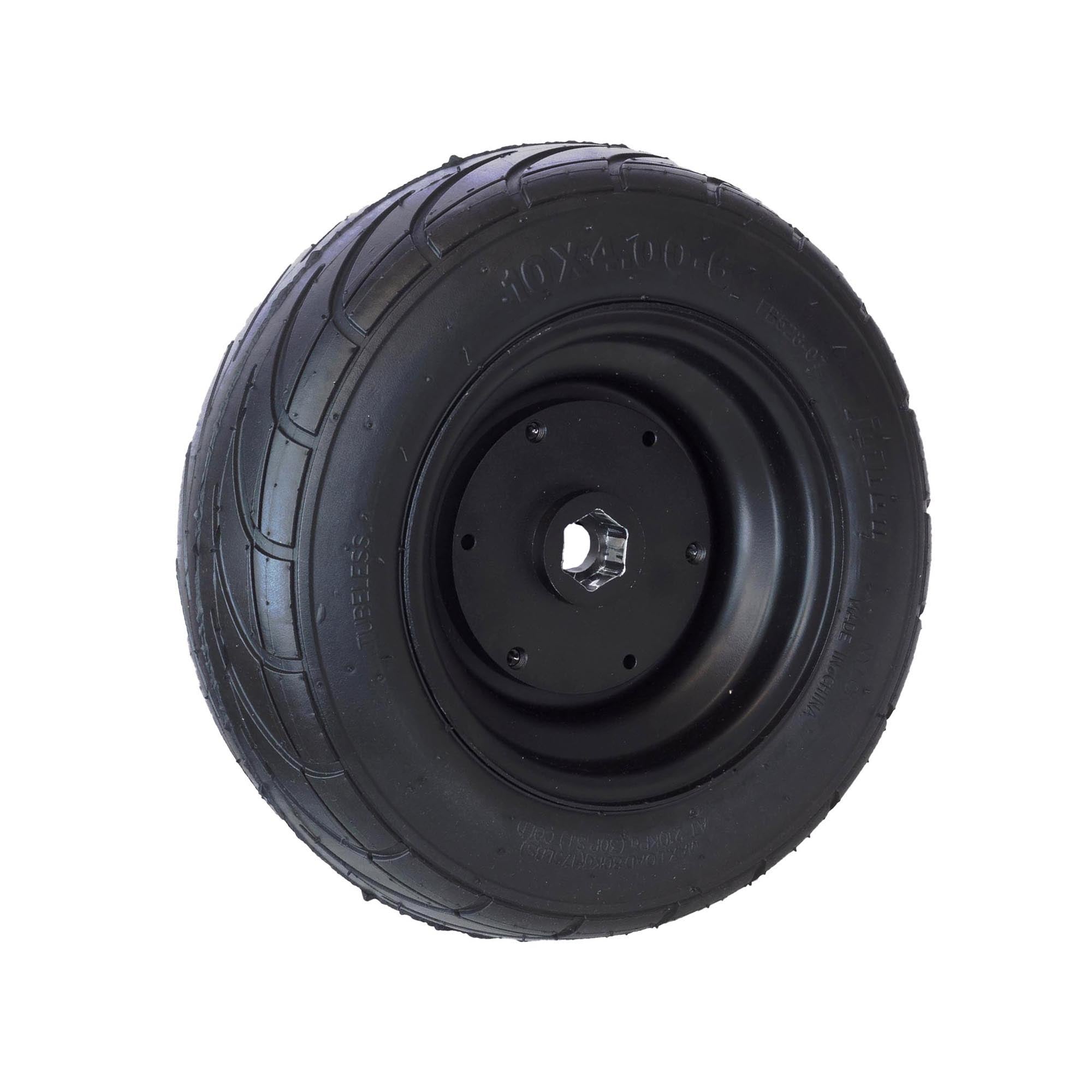 These tires have a diameter of 320mm and a width of 95mm. The outer layer is made of durable high-grade rubber, and the inner layer has an inflatable inner liner that can freely adjust tire pressure. The wheels are made of metal and reinforced with steel nails. The design of these wheels can withstand high levels of stress, can carry a weight of 175 pounds, and improve the vehicle's traction.