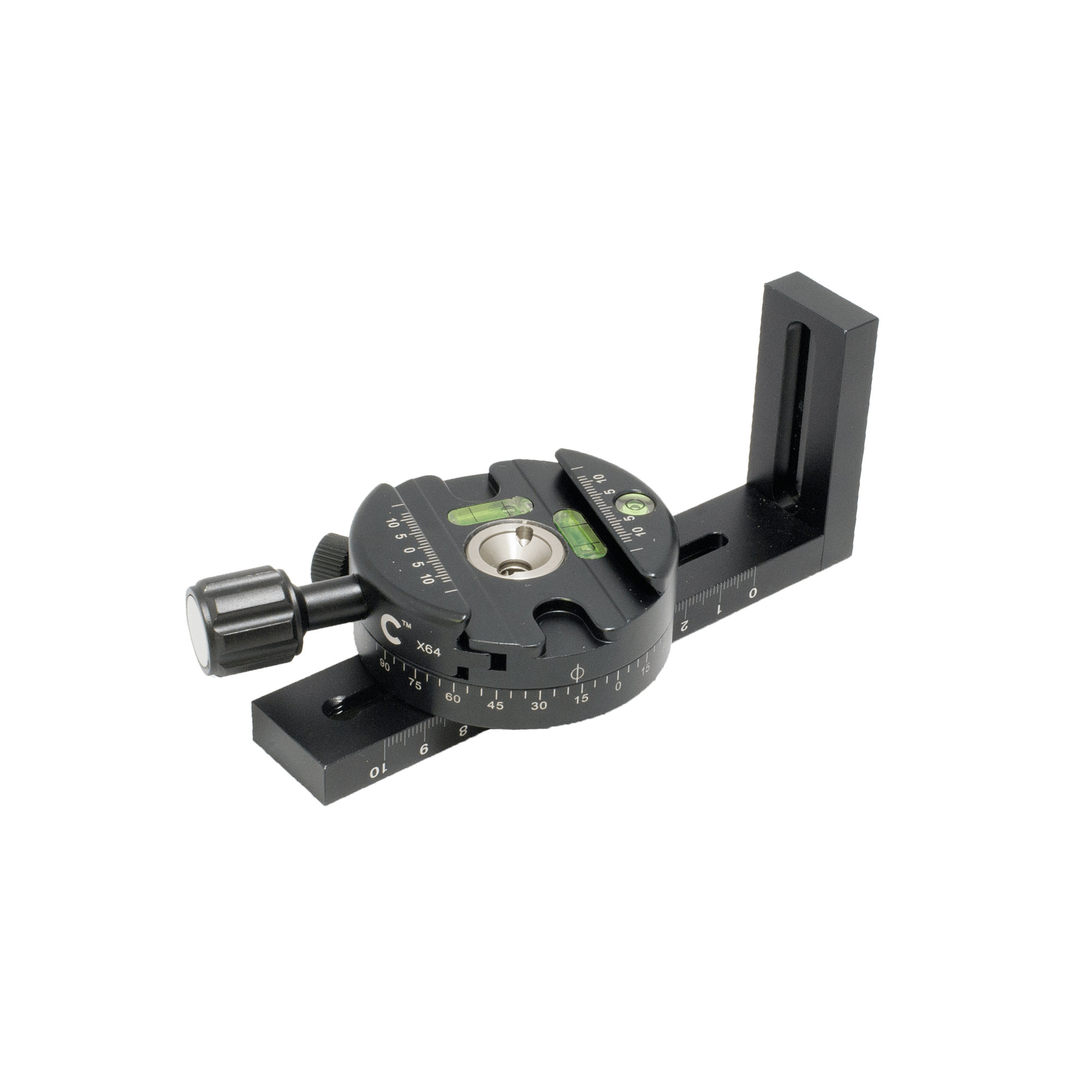 A durable and functional design, the Cinegears Precision Panning Head with Triple Bubble Levels is CNC machine cut from aircraft-grade aluminum and has several key features. The panning head allows you to quickly drop the panning clamp onto your current clamp to make panoramic shooting quick and accurate; precision panning movement with increments of 2.5 degrees. Includes a safety stop relief groove to protect your camera from accidental drops, and friction adjustment (with a built-in lock) to give you full control of panning and balance. The camera plate has 1/4'-20 thread and has a load capacity of 9kg.